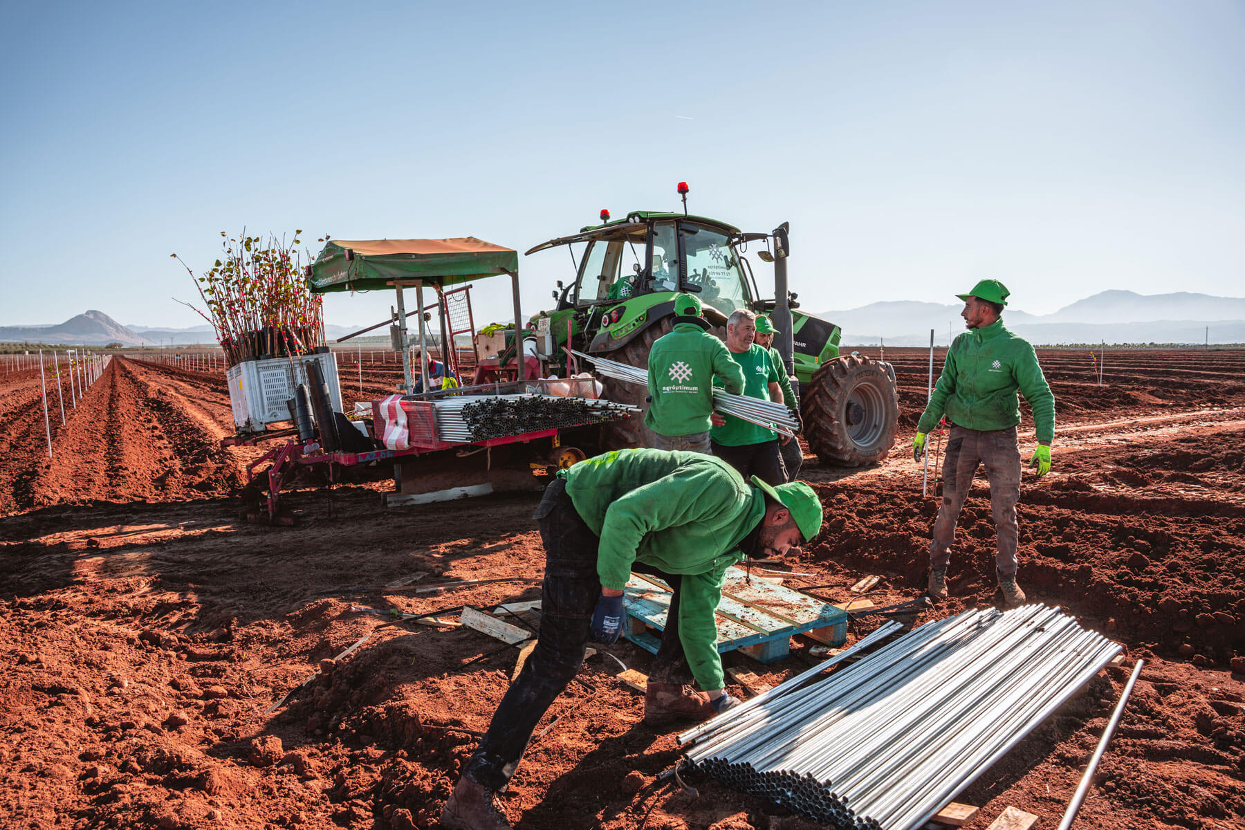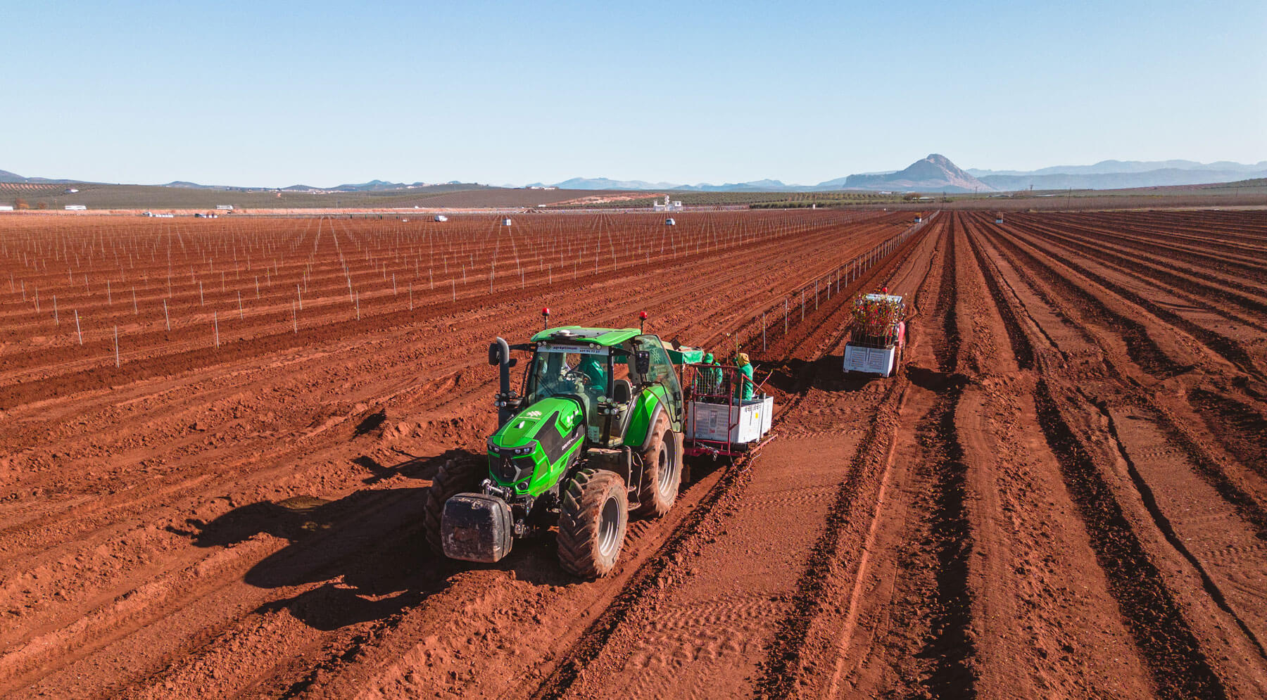 Nuestro equipo de expertos supervisa el acondicionamiento del terreno. Es una fase que incluye la extracción de piedras subterráneas mediante el subsolado, la eliminación de hierbas y el laboreo más fino del terreno, la realización de caballones para evitar encharcamientos o el paso de rotavator, como paso previo a la plantación definitiva.